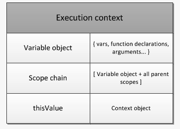 javascript 엔진은 execution context를 객체로써 관리한다. execution context 객체는 위의 정보를 저장하기 위해 아래와 같이 3개의 프로퍼티를 갖는다.