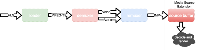 다음 그림은 실제로 hls.js가 사용하는 파이프라인 구조입니다.