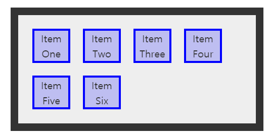 - flex-wrap의 기본값은 nowrap이다(요소를 main aixs방향으로 한 줄에 배치한다.)
